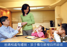 雖然要達到真心的為他人著想是需要時間的,但禮貌教育還是應及早做起,爸媽要給孩子充滿愛與尊重的家庭氣氛,讓孩子在日常應對進退中自然而然感染到合宜的態度與行為。